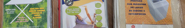 Estamos começando nossa marca com produtos como forros metalizados para tábua de passar roupa e capas para máquina de lavar roupa na Linha de Facilidades 'Casa e Cia'.